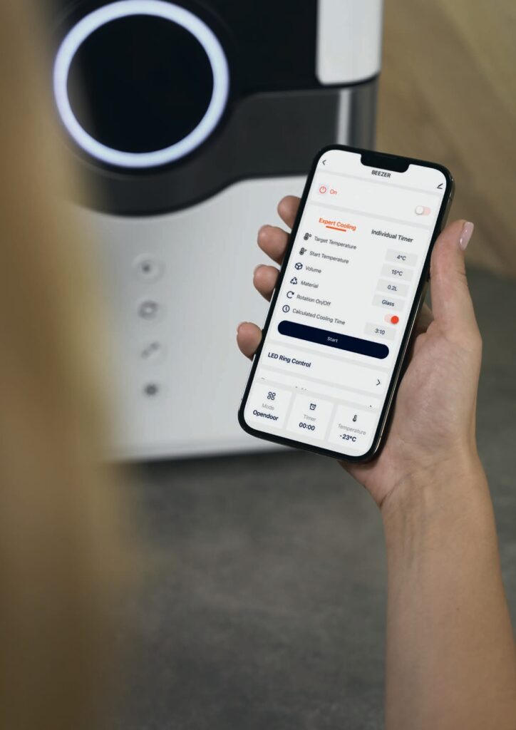 Grâce à l’application, le BEEZER® devient un véritable assistant de dégustation intelligent, offrant un contrôle précis et une flexibilité totale, même pour les événements improvisés ou les grandes caves.